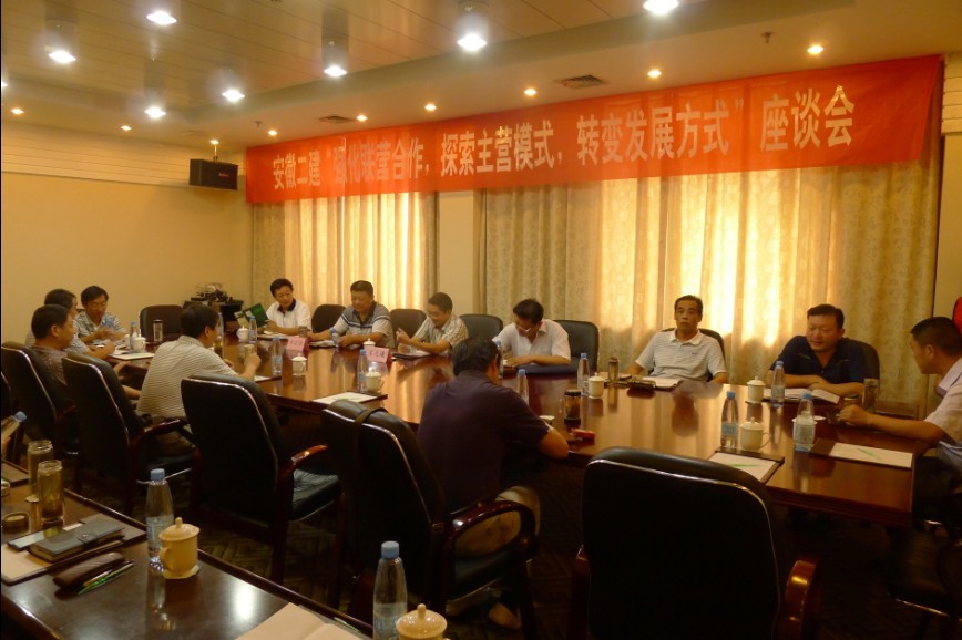 8月25日,安徽二建公司就“怎样强化联营合作管理,探索主营营业生长模式,转变生长方法”在六循分公司召开了专题座谈会。公司向导班子成员、总司理助理、副总工程师、副总经济师等职员加入聚会,集团公司党委委员、副总司理王元曦亲临聚会并做主要讲话。
