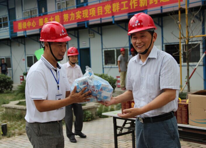 牛曙东副书记一行还为奋战在建科院项目的一线职工送上了毛巾、绿豆、白糖、凉茶、风油精、十滴水等防暑降温用品和药品,并嘱咐高温季节要合理安排作息时间,确保施工现场作业清静,避免泛起高温中暑情形,要站在清静生长的高度,切实将防暑降温事情安排好、落实好,包管职工清静度夏。