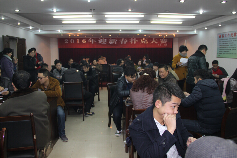 为了富厚职工业余生涯,愉悦身心,增进相互间交流,2016年1月29日上午,公司工会在三楼聚会室举行了2016年职工迎新春扑克牌角逐。角逐接纳限时镌汰制方法,经由一系列强烈角逐,最终机械公司何斌、李国强获得冠军。