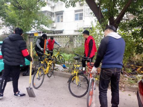 早上8点,所有加入运动的青年自愿者准时在公司荟萃, 前往裕溪路社居委,在社区事情职员的配合下整理公司生涯区绿化带中的种种垃圾以及隐藏在绿化带中的破旧共享单车。