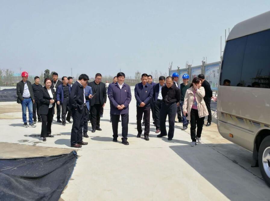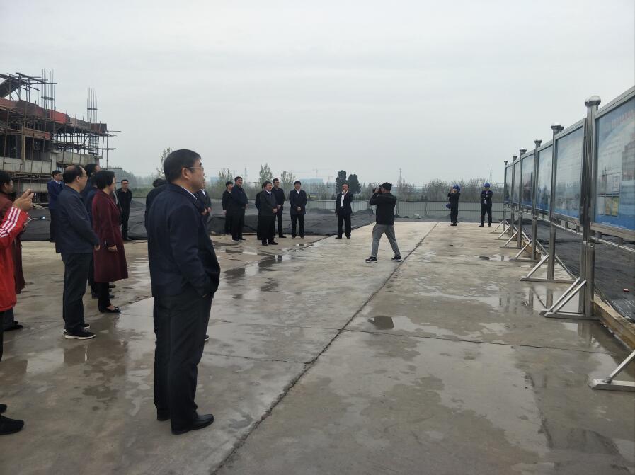 2019年4月2日上午,平顶山市委书记周斌宝丰县委书记许红兵一行莅临安徽二建承建的河南宝丰西商农产品(冷链)物流园项目施工现场,针对扬尘治理及清静生产情形举行检查指导事情。