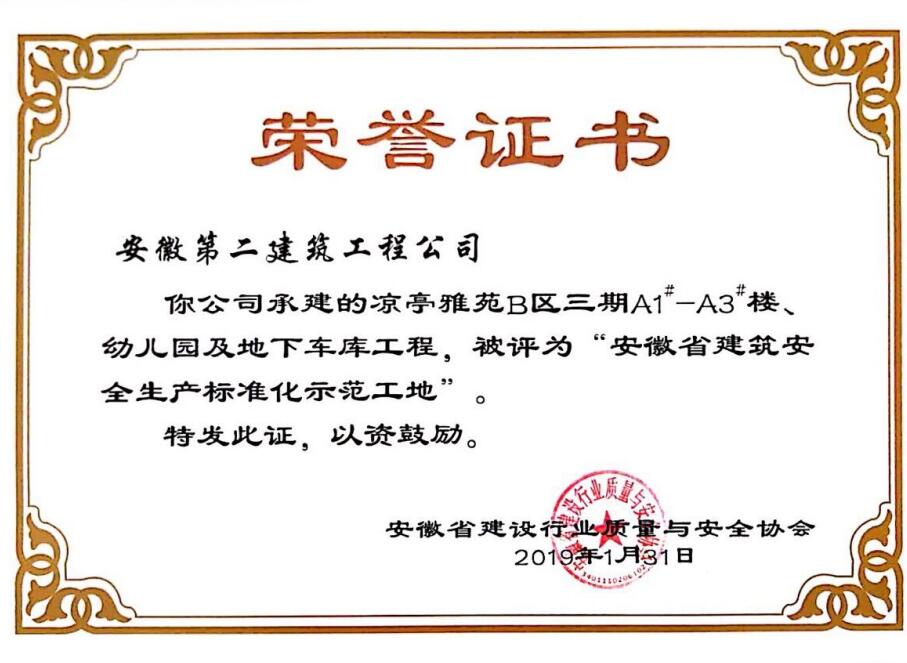 2018年,公司共建设省级清静生产标准化树模工地5个,市级8个,集团级11个,建设项目数目逐年增添。通过文明建设事情,切实提高企业清静管理水平、着名度和竞争力。获得了主管部分和业主监理的认可,取得了优异的社会效益,树立了品牌形象。