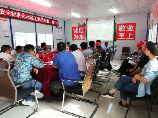 2019年9月24日,安庆市建委清静生产标准化树模工地评审组一行对安徽二建润业国际电商工业园一期二批次项目举行市级清静生产标准化树模工地的评审验收  。