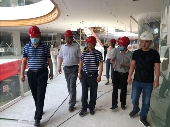 2020年5月23日上午,建工控股党委事情部部长、股份公司党委副书记徐文联一行莅临安徽二建阜阳吾悦广场项目党员先锋号工程验收。