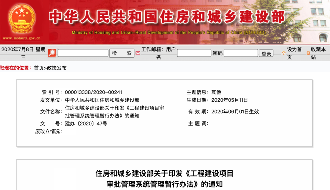 住房和城乡建设部印发《工程建设项目审批管理系统管理暂行步伐》