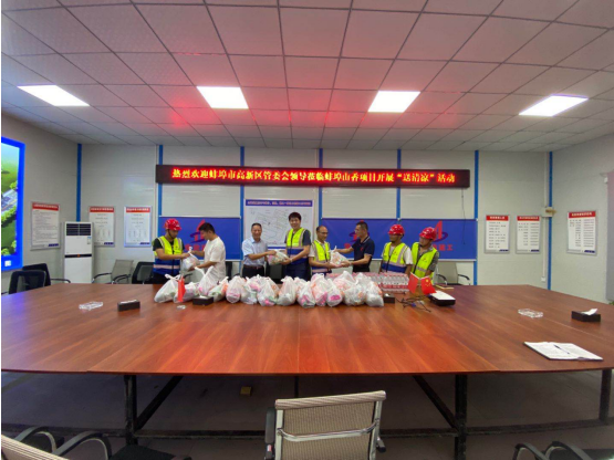 8月11日下昼,蚌埠市高新区管委会韩永林,高新投资集团、高新建发公司总司理陈辉莅临安徽二建蚌埠山香安顿房EPC项目开展“送清凉”运动,为项目送来了藿香正气水、绿豆、菊花茶、花露珠等防暑降温物品。韩永林询问了生产进度、质量清静施工以及高温天气项目部接纳的防暑降温步伐等方面情形,同时要求,一定要确保高温天气下现场作业职员的清静,切实提高对一线作业职工的体贴、眷注,阻止 “非战斗减员”情形爆发,把清静放在首位,做到清静文明施工。