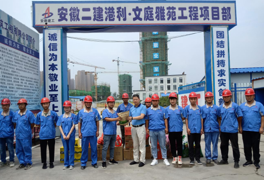 炎炎夏日,酷热似火。8月12日,安徽二建公司总司理陆勤斌,工会女工主任王俊一行莅临淮北国金华府(紫麟苑)、淮北恒基城安贞大厦、淮北港利文庭雅苑项目开展2020年“送清凉”运动。