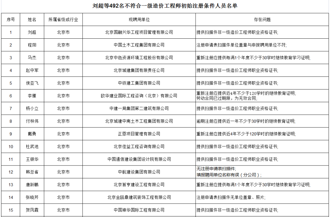 别的,还保存着“无注册申请表扫描件”、“逾期注册职员未提供继续教育学习证实”和“填报聘用单位名称有误”等问题,导致部分职员不切合初始注册条件。