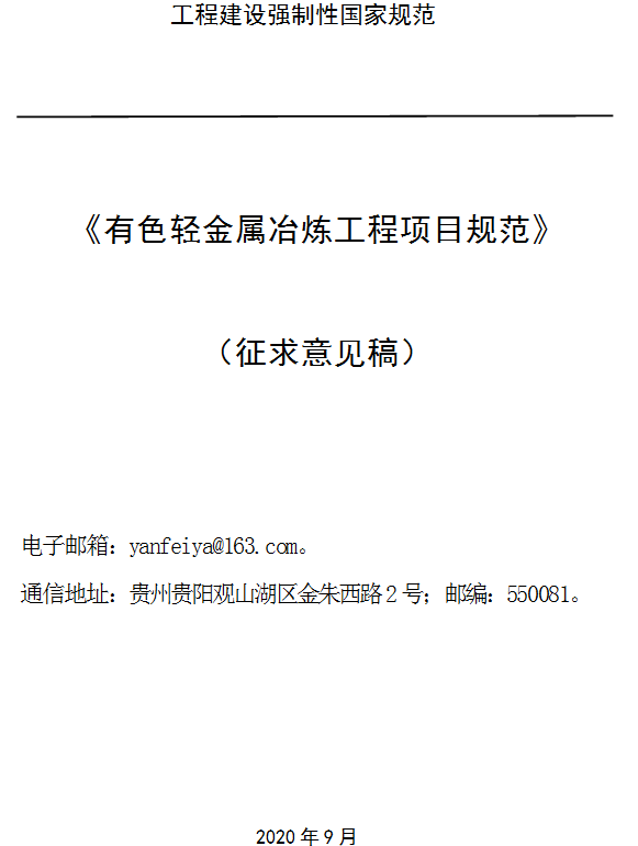 ¡¶ÓÐÉ«Çá½ðÊôÒ±Á¶¹¤³ÌÏîÄ¿¹æ·¶£¨Õ÷ÇóÒâ¼û¸å£©¡·