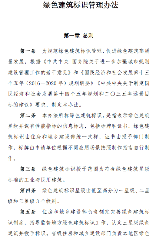 克日,住房和城乡建设部印发《绿色修建标识管理步伐》(以下简称《步伐》),要求各地住房和城乡建设主管部分团结现实认真贯彻执行。