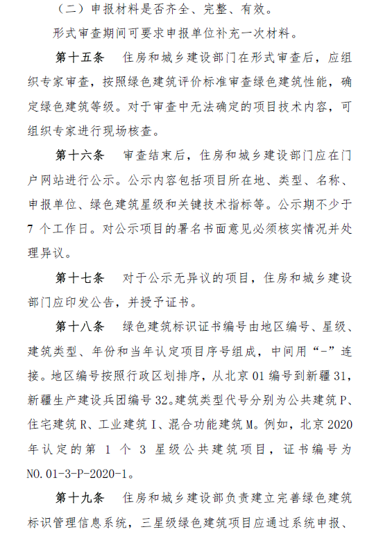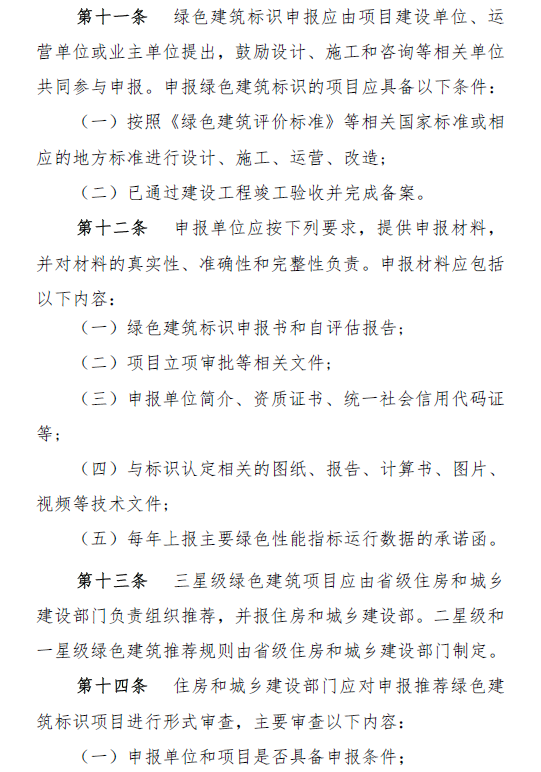 《步伐》划定,住房和城乡建设部认真制订完善绿色修建标识制度,指导监视地方绿色修建标识事情,认定三星级绿色修建并授予标识。省级住房和城乡建设部分认真外地区绿色修建标识事情,认定二星级绿色修建并授予标识,组织地市级住房和城乡建设部分开展外地区一星级绿色修建认定和标识授予事情。