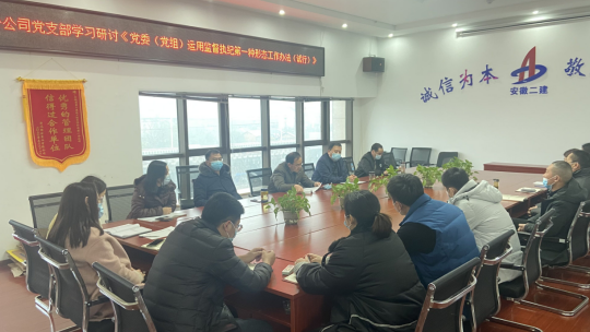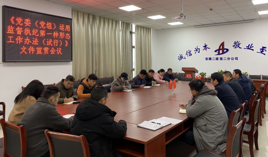 安徽二建公司组织学习《党委(党组)运用监视执纪第一种形态事情步伐(试行)》